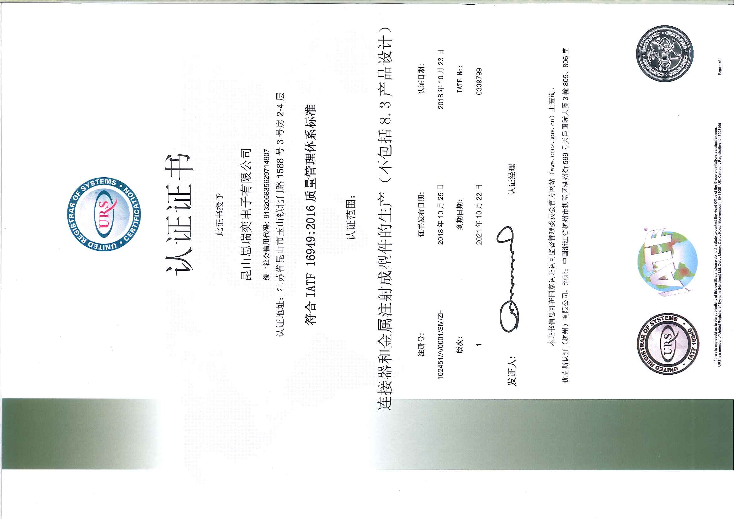 思瑞奕電子有限公司成立于2010年10月,注冊(cè)資金7500萬(wàn)人民幣,總部位于江蘇省昆山市,在重慶、江蘇東臺(tái)、江蘇太倉(cāng)設(shè)有分廠,公司于2011年通過(guò)ISO9001/ISO14001認(rèn)證,2013年通過(guò)高新技術(shù)企業(yè)和TS16949(IATF)體系認(rèn)定,2016年先后通過(guò)知識(shí)產(chǎn)權(quán)管理體系認(rèn)證、安全生產(chǎn)標(biāo)準(zhǔn)化認(rèn)證,2017年獲頒江蘇省民營(yíng)科技企業(yè)、2018年先后獲得蘇州市人民政府認(rèn)定企業(yè)技術(shù)中心、科技部認(rèn)定中小型科技企業(yè)、江蘇省最具成長(zhǎng)性高科技企業(yè)、2020年獲得江蘇省人民政府認(rèn)定企業(yè)技術(shù)中心、2021年獲得蘇州市瞪羚計(jì)劃入庫(kù)企業(yè)、江蘇省省級(jí)工程技術(shù)研究中心、江蘇省專(zhuān)精特新中小企業(yè)等榮譽(yù)稱(chēng)號(hào)......